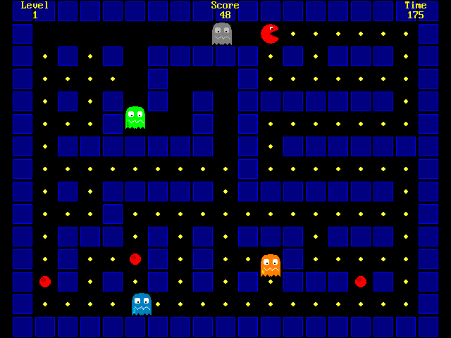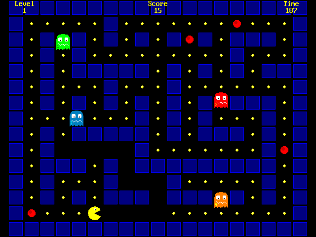 Collect the dots and avoid the ghosts over countless randomly generated mazes! Earn extra points and time by collecting fruit!