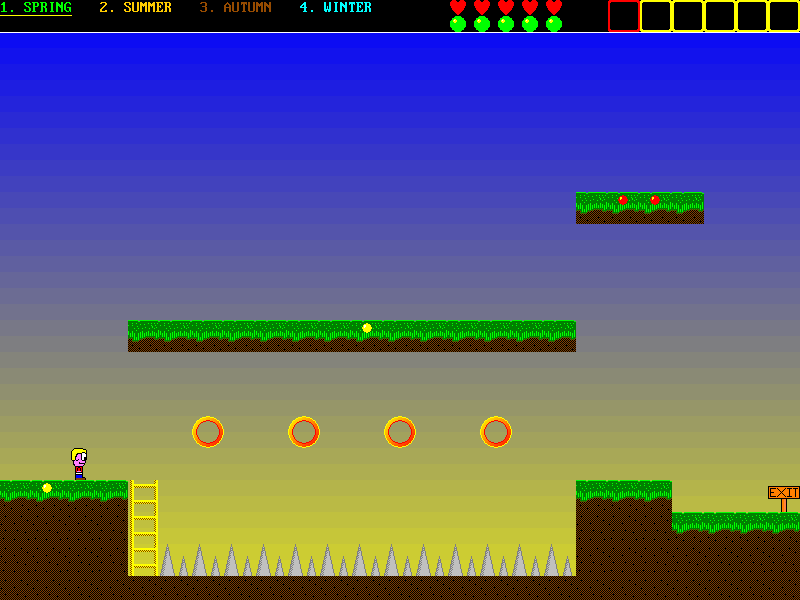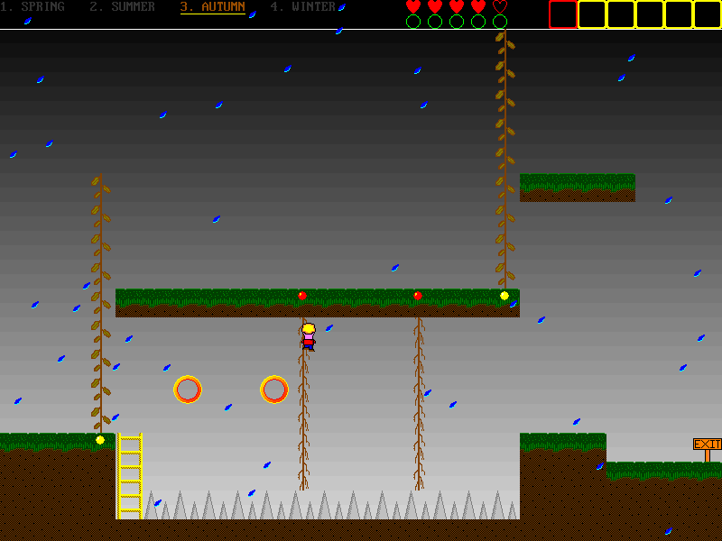 The aim is to collect all of the rings on each level, to help you do this you are able to jump between the seasons. For example, plant a seed in spring it grows into a plant you can climb in summer.